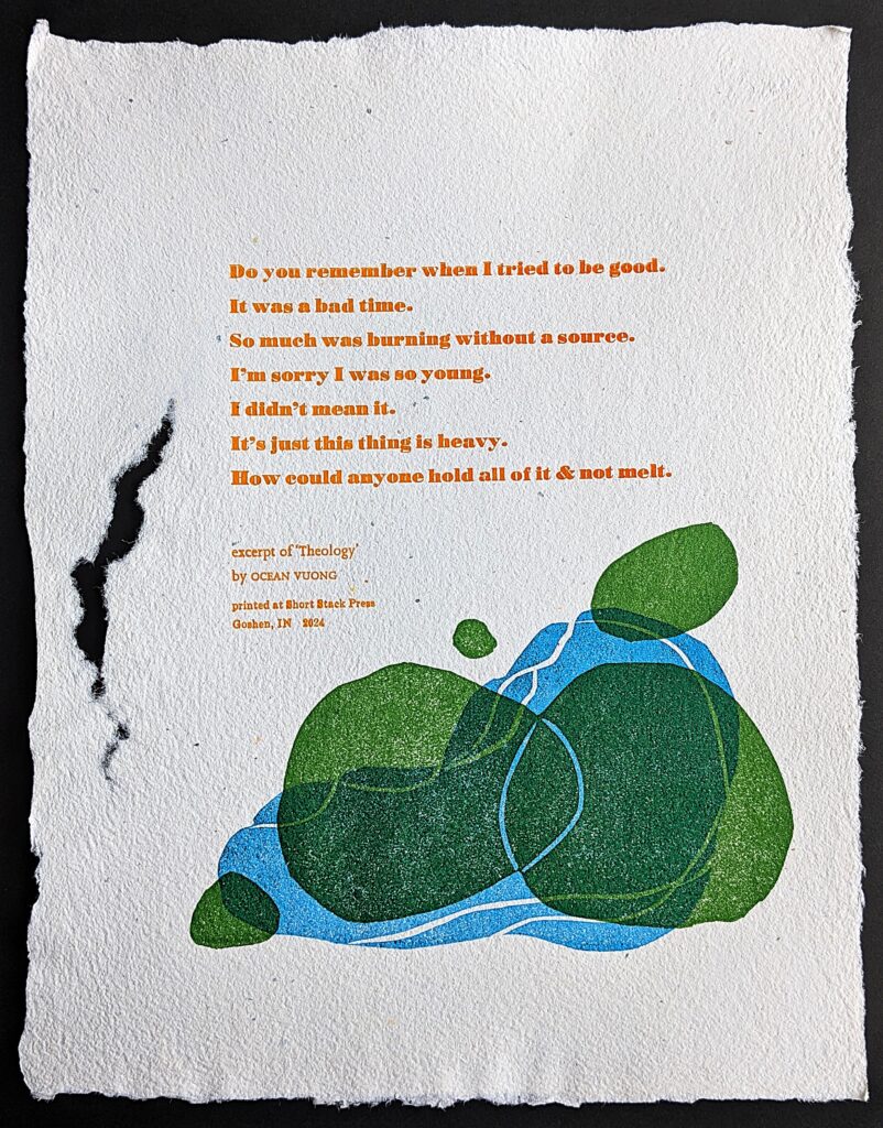 Excerpt of Theology (letterpress, relief, artist made paper, 2024)